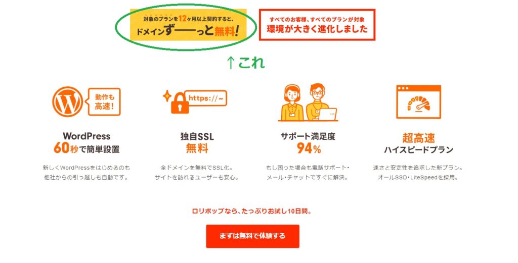 のドメイン無料特典クーポンが付与されるのが遅いので(契約から7日後)、10日間あるお試し期間があまり意味ないように思います。